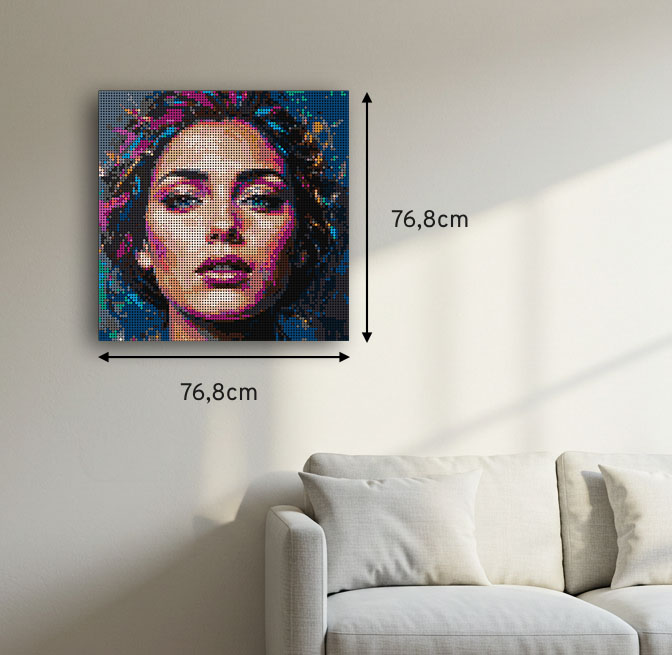 El montaje es sencillo y accesible, con instrucciones claras que te guiarán paso a paso mientras das forma a esta obra de arte visual. El cuadro final es ideal para decorar cualquier ambiente, ya sea un hogar lleno de vida, una oficina creativa o una sala contemporánea. Su diseño multicolor añade personalidad y un toque artístico que inspira emociones y conversaciones.