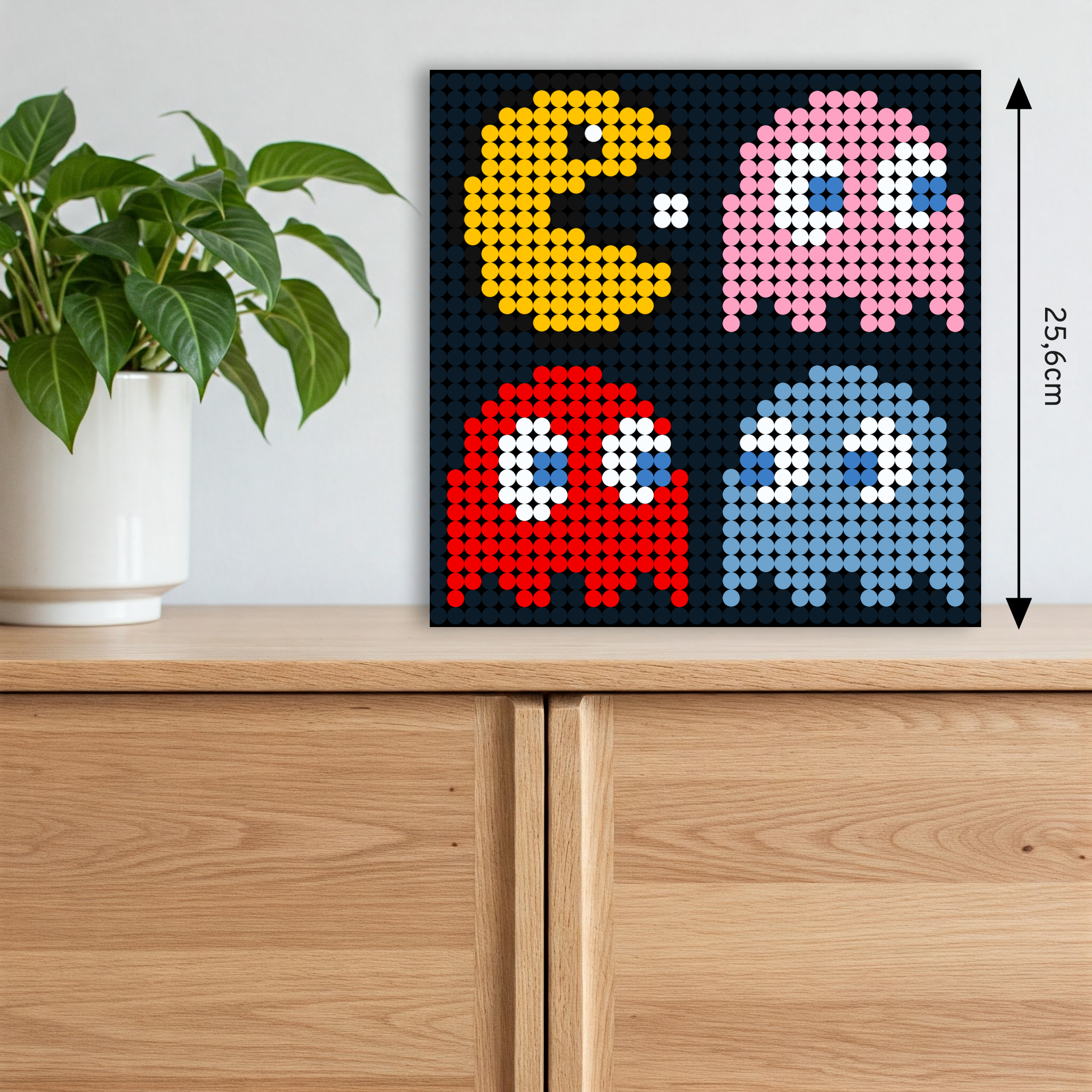 Crea tu propio cuadro pixelado del clásico Comecocos con nuestro set de bricks. Este kit incluye todas las piezas necesarias para ensamblar una imagen vibrante y nostálgica del icónico personaje de los videojuegos retro. Diseñado para amantes del pixel art y la cultura geek, es perfecto para decorar tu hogar, oficina o regalar a un fanático de los juegos arcade. Las piezas encajan fácilmente, ofreciendo una experiencia creativa y entretenida. Con instrucciones detalladas, cualquiera puede armarlo sin dificultad.