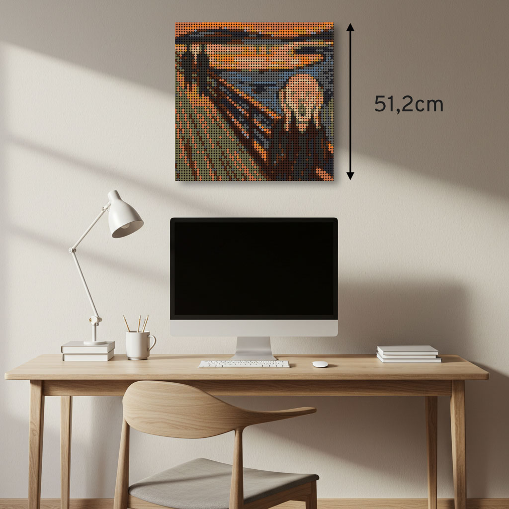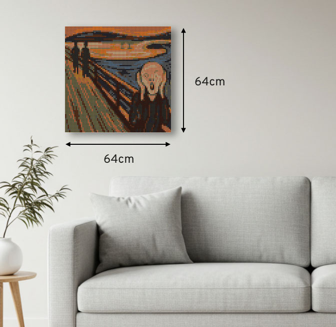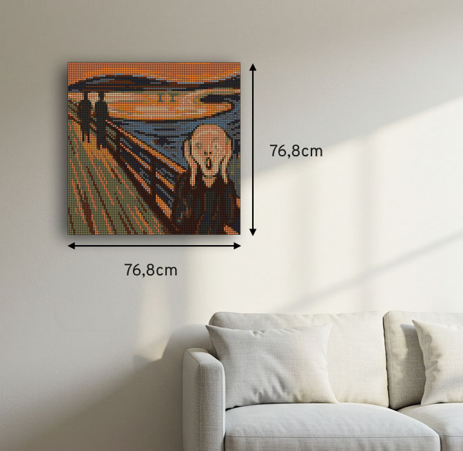 Revive la intensidad de El Grito de Edvard Munch con este cuadro de bricks que reinterpreta la obra maestra expresionista a través de un enfoque único y moderno. Este diseño captura la emoción y el dramatismo de la pintura original, transformándola en una experiencia creativa y visual que no deja indiferente a nadie.