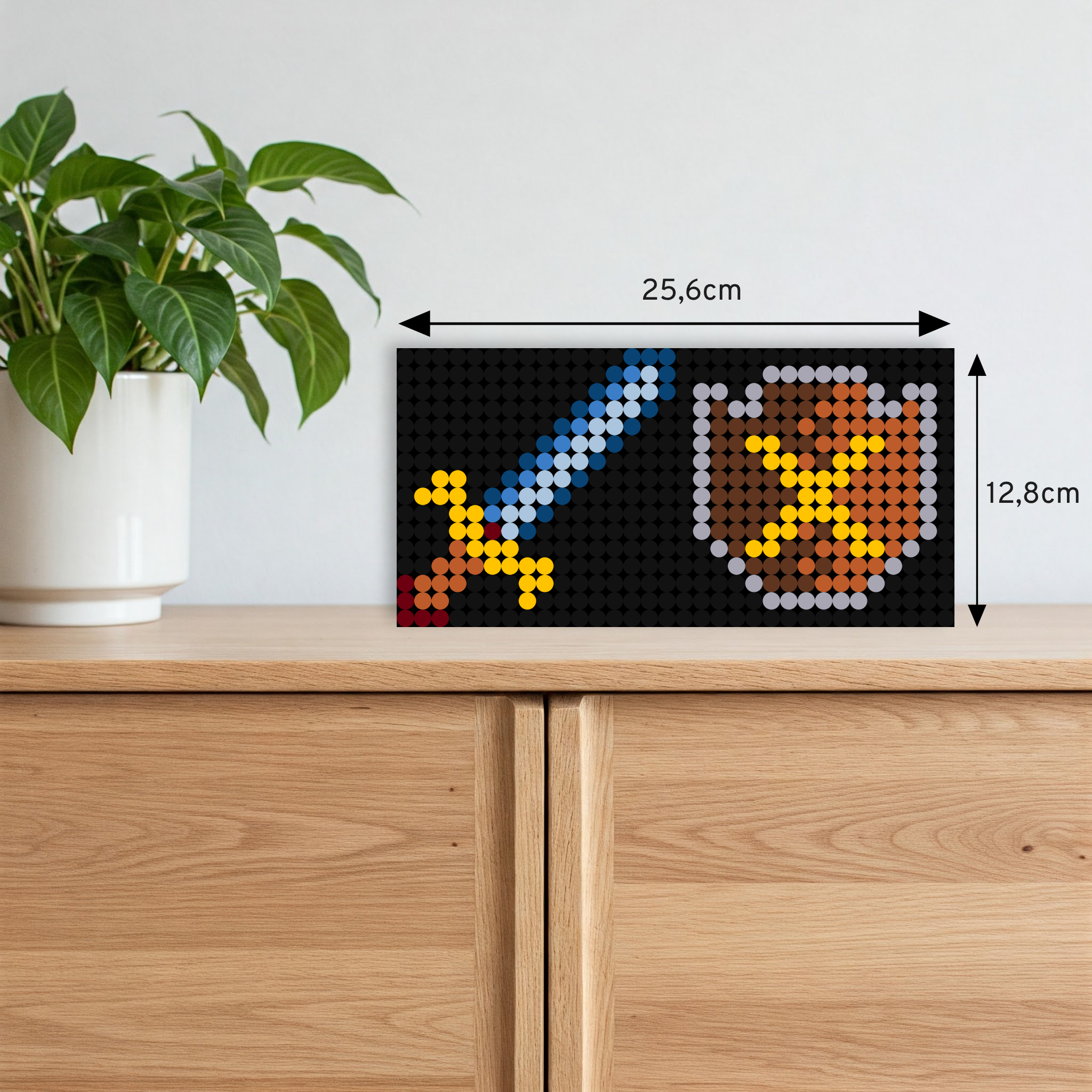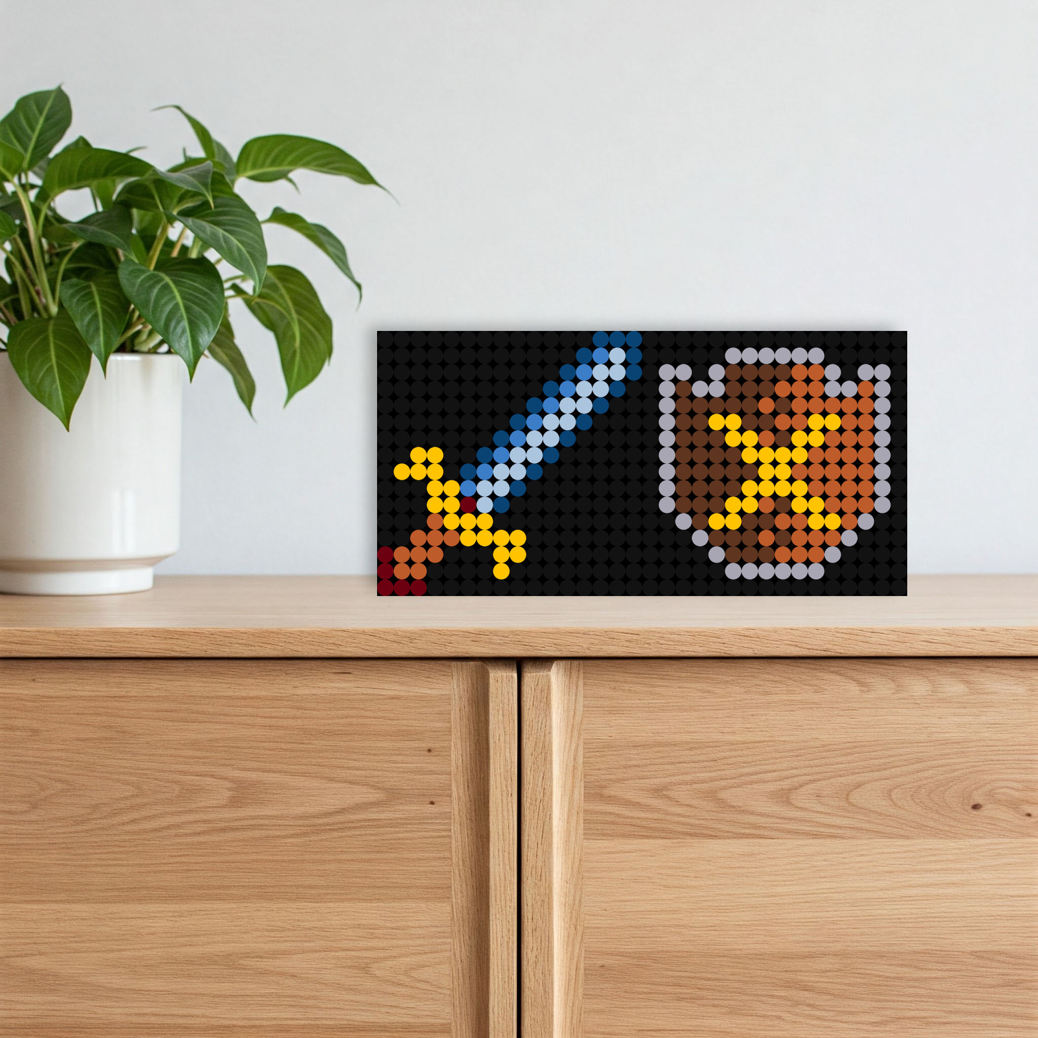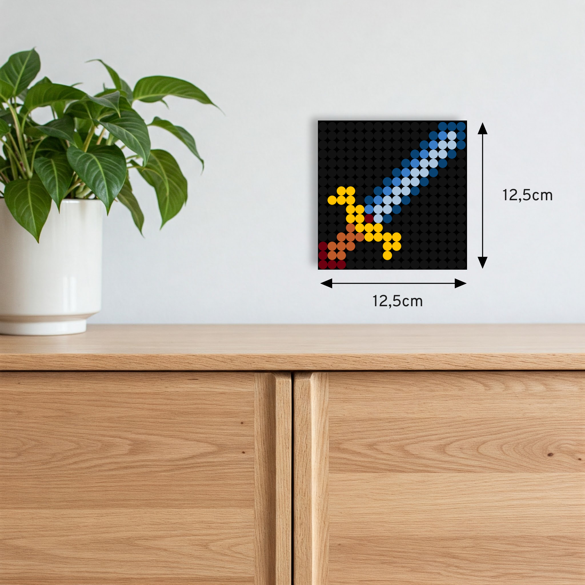 Atrévete a canalizar la energía de la aventura y la valentía con nuestro cuadro de bricks en forma de espada. Este diseño impresionante rinde homenaje a los héroes de las historias épicas y los videojuegos clásicos, combinando la fuerza del símbolo de la espada con la creatividad moderna del arte en bricks.