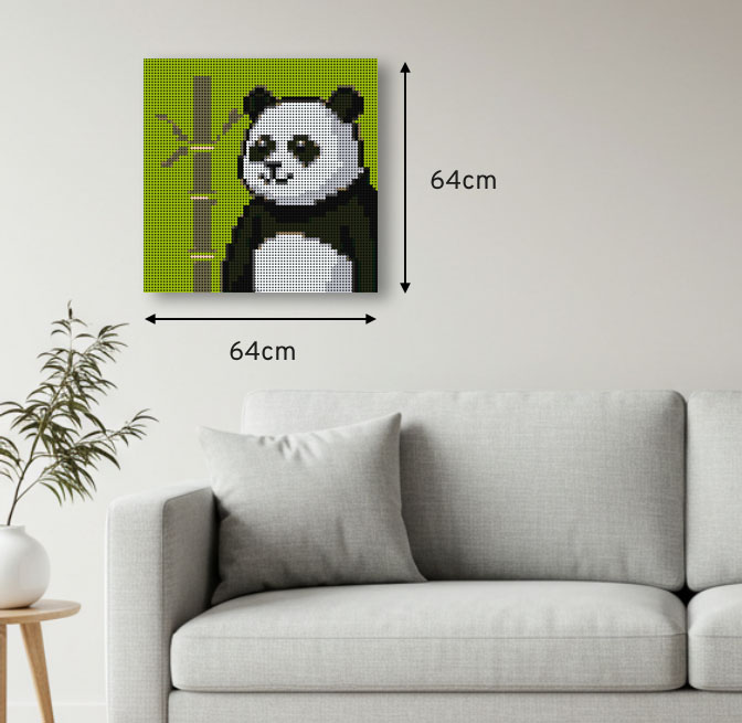 Celebra la dulzura y el encanto único del oso panda con este cuadro de bricks que captura su icónica presencia. Este diseño utiliza formas redondeadas y detalles estilizados para reflejar la calma y belleza de este emblemático animal, que simboliza paz, equilibrio y una conexión especial con la naturaleza.