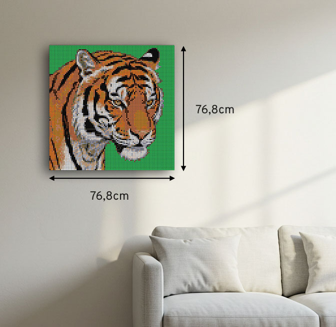 Captura la majestuosidad y la energía indomable del tigre con este cuadro de bricks diseñado para resaltar la grandeza de este emblemático felino. Con detalles dinámicos y un estilo audaz, este proyecto creativo refleja la elegancia y el poder del tigre en una composición que no pasará desapercibida.