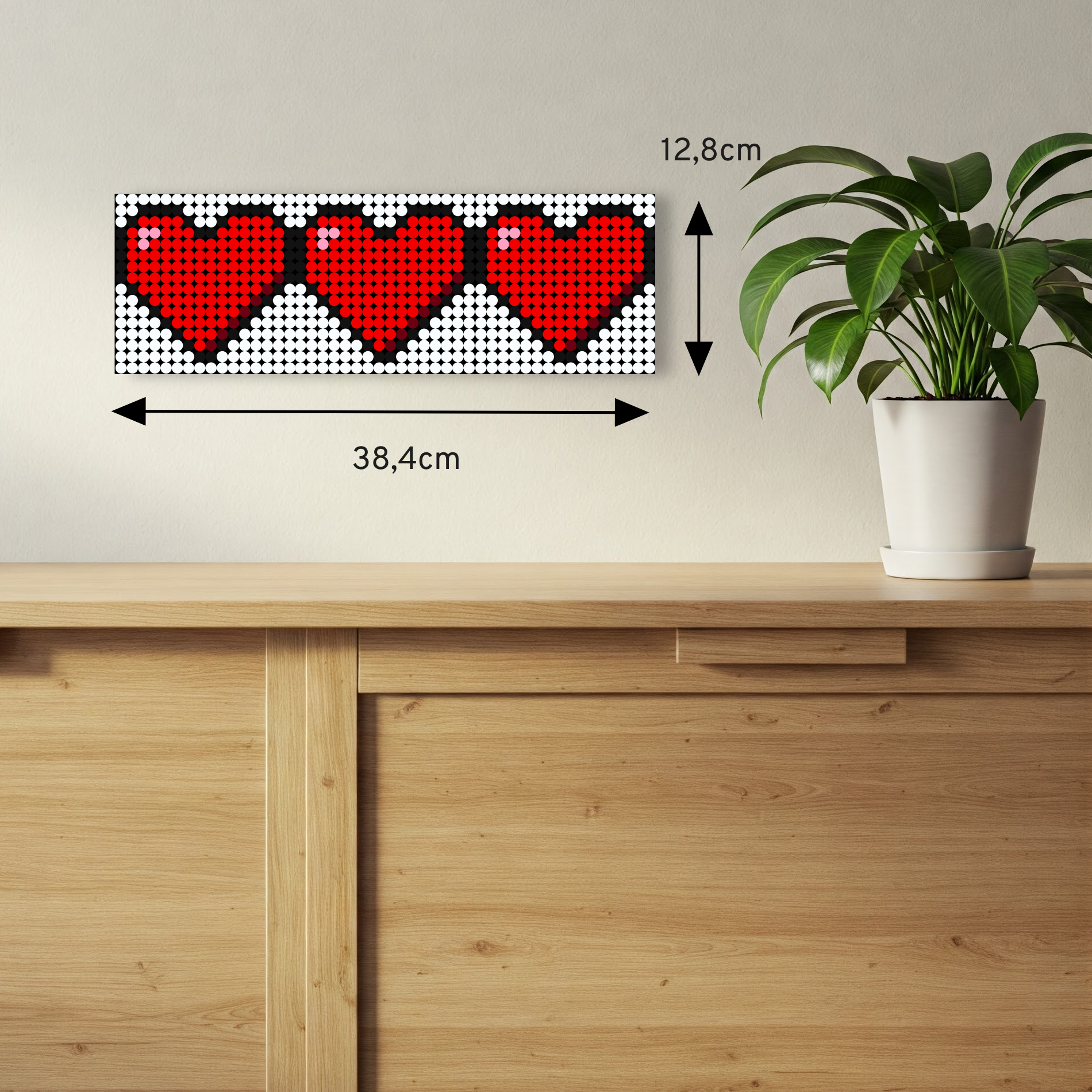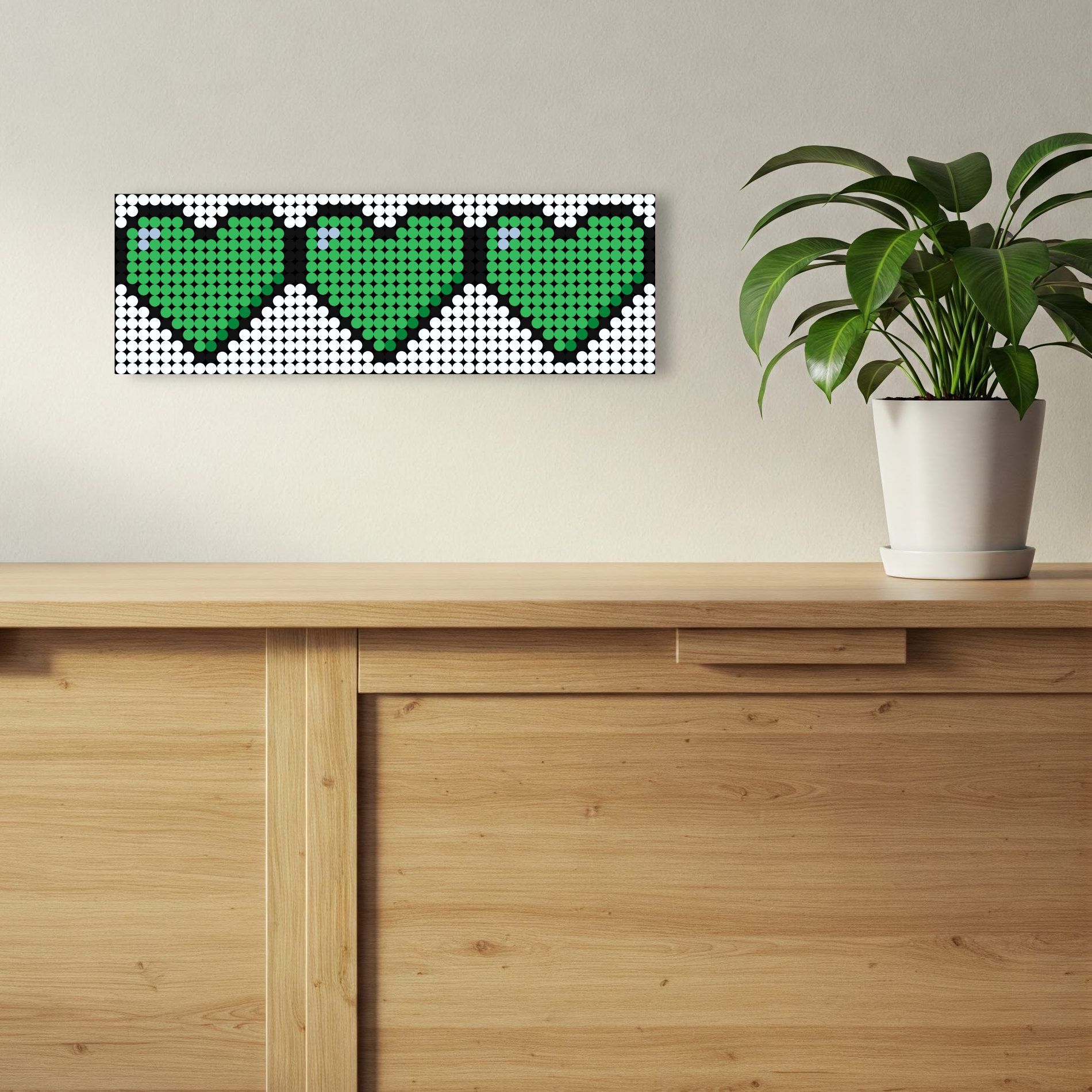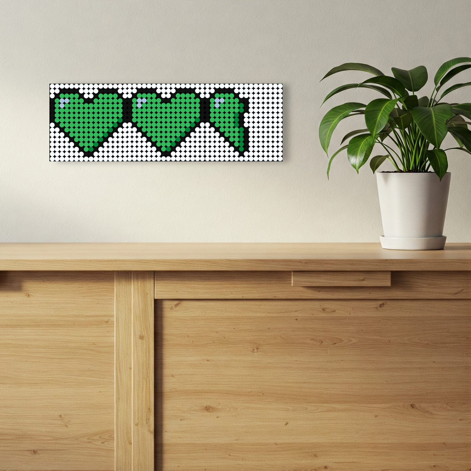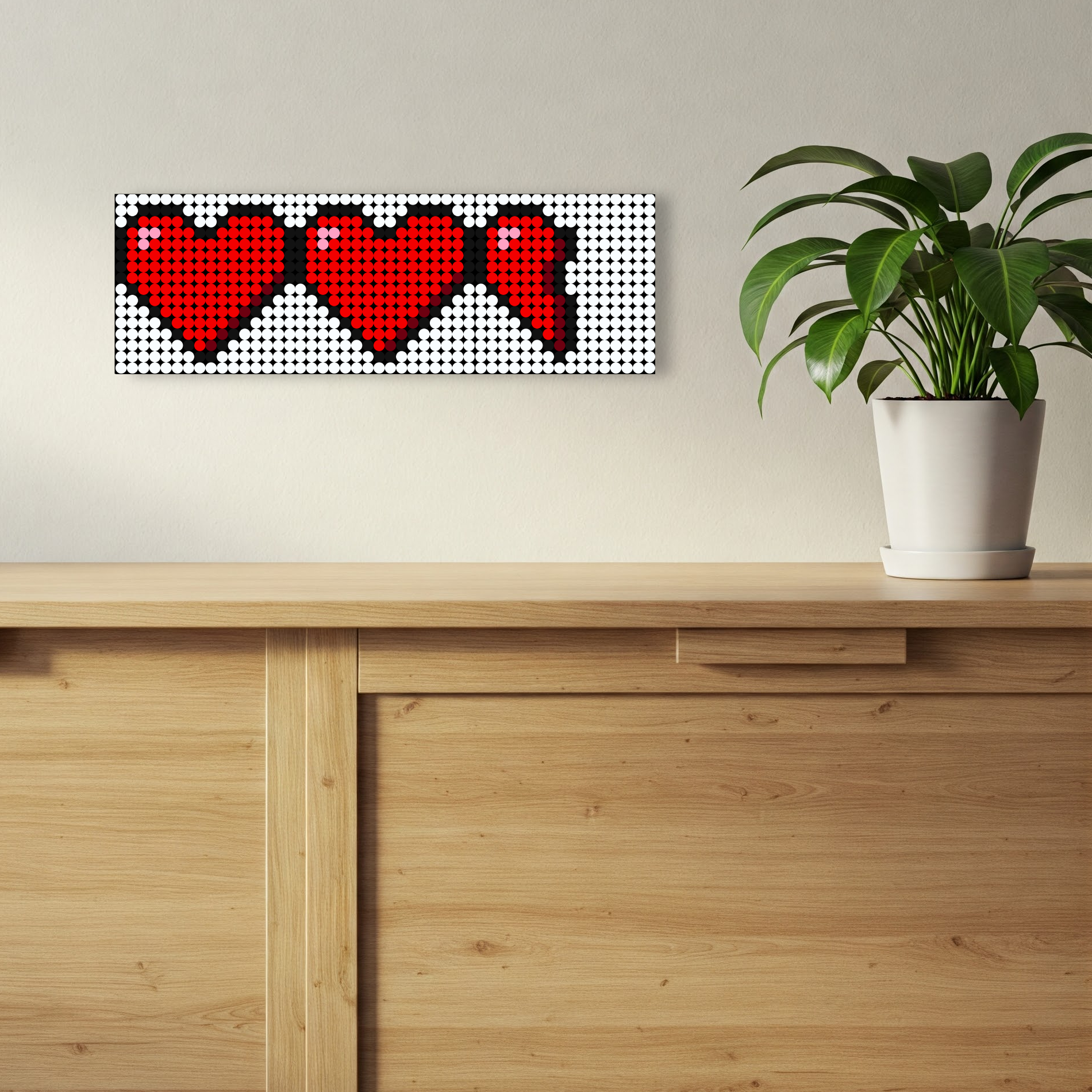 Dale vida a tus espacios con nuestro set de bricks de corazones estilo retro, representando las vidas restantes, tal como en los videojuegos clásicos. Diseñado para los fanáticos del pixel art y la cultura gamer, este set te permite crear un cuadro único que captura la esencia nostálgica de los juegos arcade.