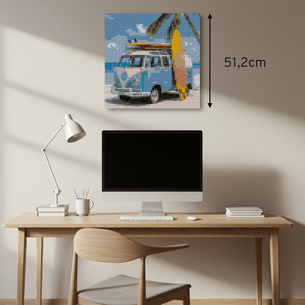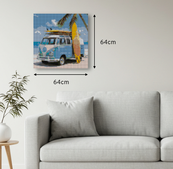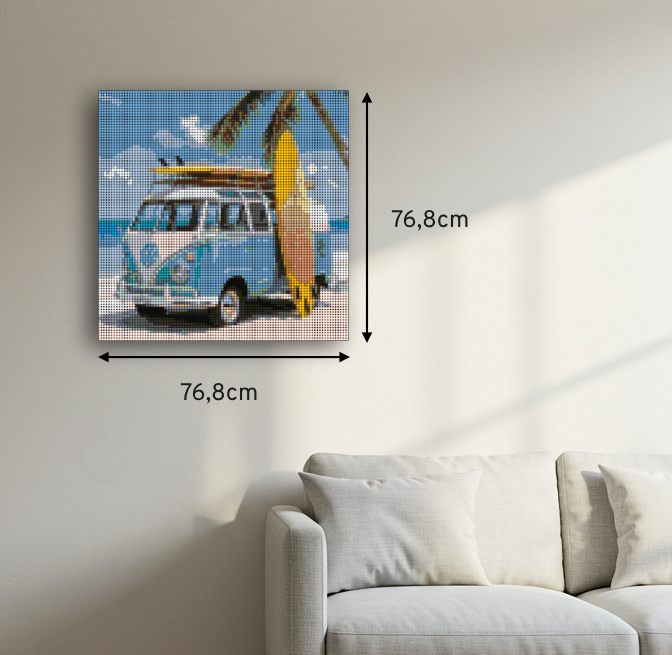 Revive el espíritu libre y aventurero con este cuadro de bricks inspirado en la icónica furgoneta Volkswagen Welly. Este diseño captura la esencia del viaje, la nostalgia y la exploración, representando una furgoneta clásica en una composición vibrante y detallada que combina estilo retro con modernidad.
